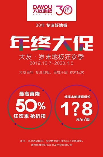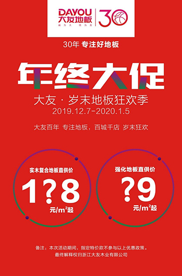 为了感谢一直以来支持我们的消费者,以往被疯抢的纯实木地板、实木复合地板、强化地板等爆款单品登陆亚洲国产综合精品中文一区二区地板全国各大专卖店,岁末狂欢季,年终折扣盛宴,正式启动! 更多优惠等你来哟!